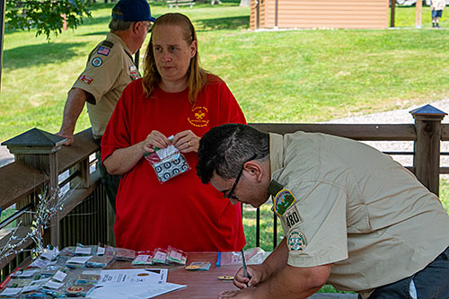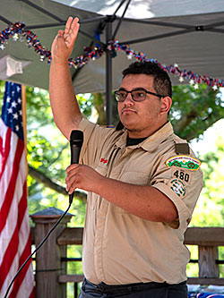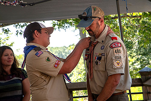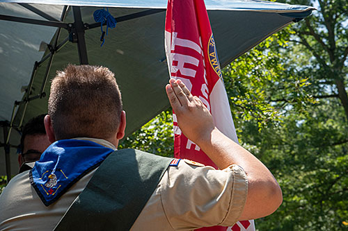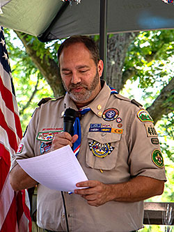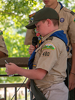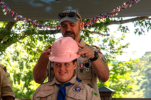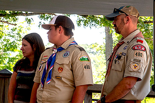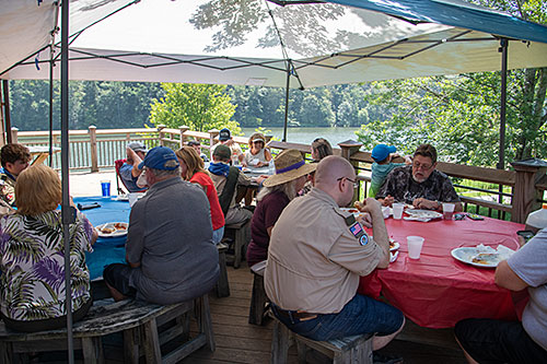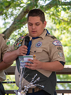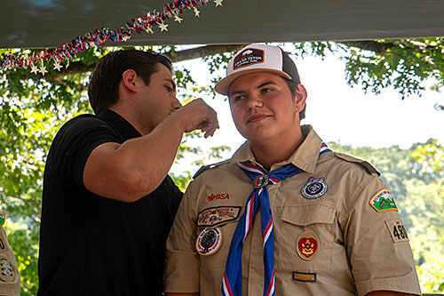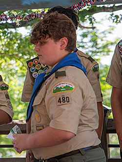 Our annual Family Day and Court of Honor was held at Lakeview Pavillion in Laurel Hill State Park on Saturday, August 9th. Some of of our members camped at the park on Friday night. Saturday our meal consisted of slider sandwiches and chicken tenders, provided by the troop, along with salads, side dishes and deserts brought by attendees. Following the meal, the Court of Honor was held, where scouts received merit badges and rank advancements they had recently earned. The new Senior Patrol Leader was installed. First year Scouts were 'sorted' into their permanent patrols. Parker Cernuska was presented with his Eagle rank.