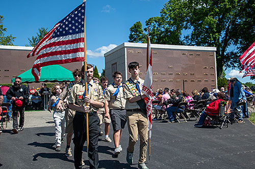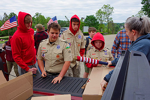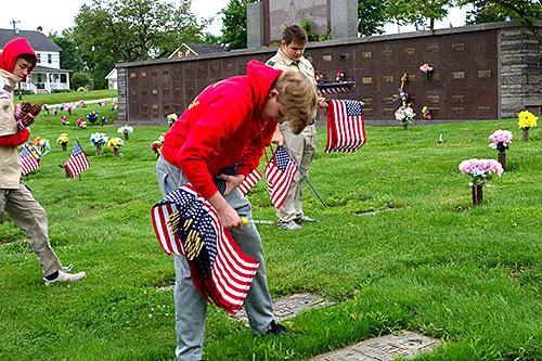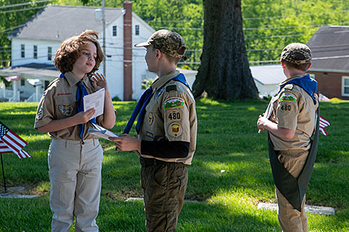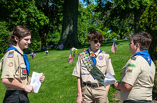 Each year, in remembrance of those who gave their lives for our country, and in honor of those who have served in our country's military forces, Troop 480 places flags on veterans graves and participates in Memorial Day services at the Westmoreland Memorial Park.