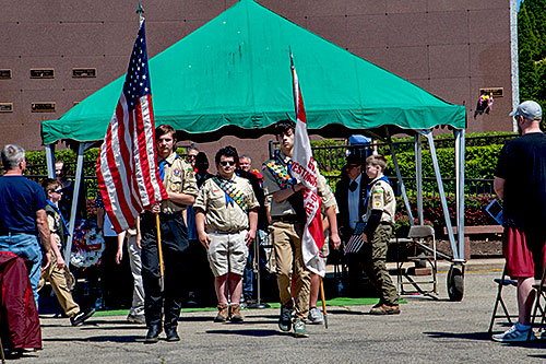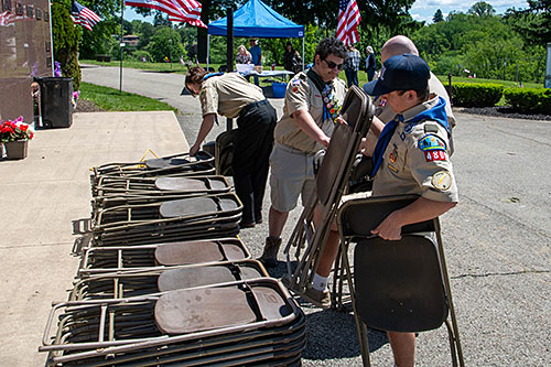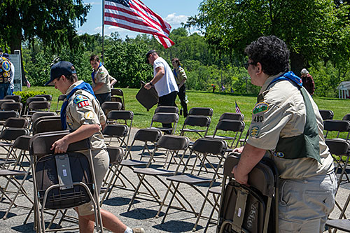 On Memorial Day, Monday, May 26th, the troop returned to Westmoreland Memorial Park to help with the Rememberance Service. Our members helped direct traffic, handed out the programs, helped folks to their seats, handled the opening flag ceremony and assisted at the end of the service, by taking down and stacking chairs.