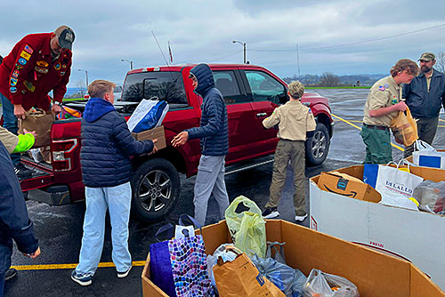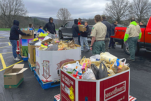 Troop 480, along with our sister Pack 480, participated in the 2025 Scouting for Food Drive. On Saturday Morning, April 5th we distributed information hangers on homes in our community. We went back the following week (April 12th) and picked up food donated by families and individuals. This year the Troop and Pack collected 343 bags of food.